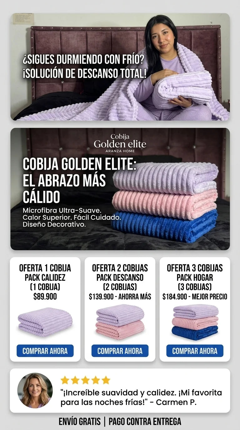 Disfruta de una cobija diseñada para tu comodidad: ligera, fácil de acomodar y perfecta para el día a día. Al elegir Aranza Home, no solo llevas versatilidad, sino el respaldo de una empresa fabricante que cumple con los más altos estándares de calidad y garantía en cada detalle."